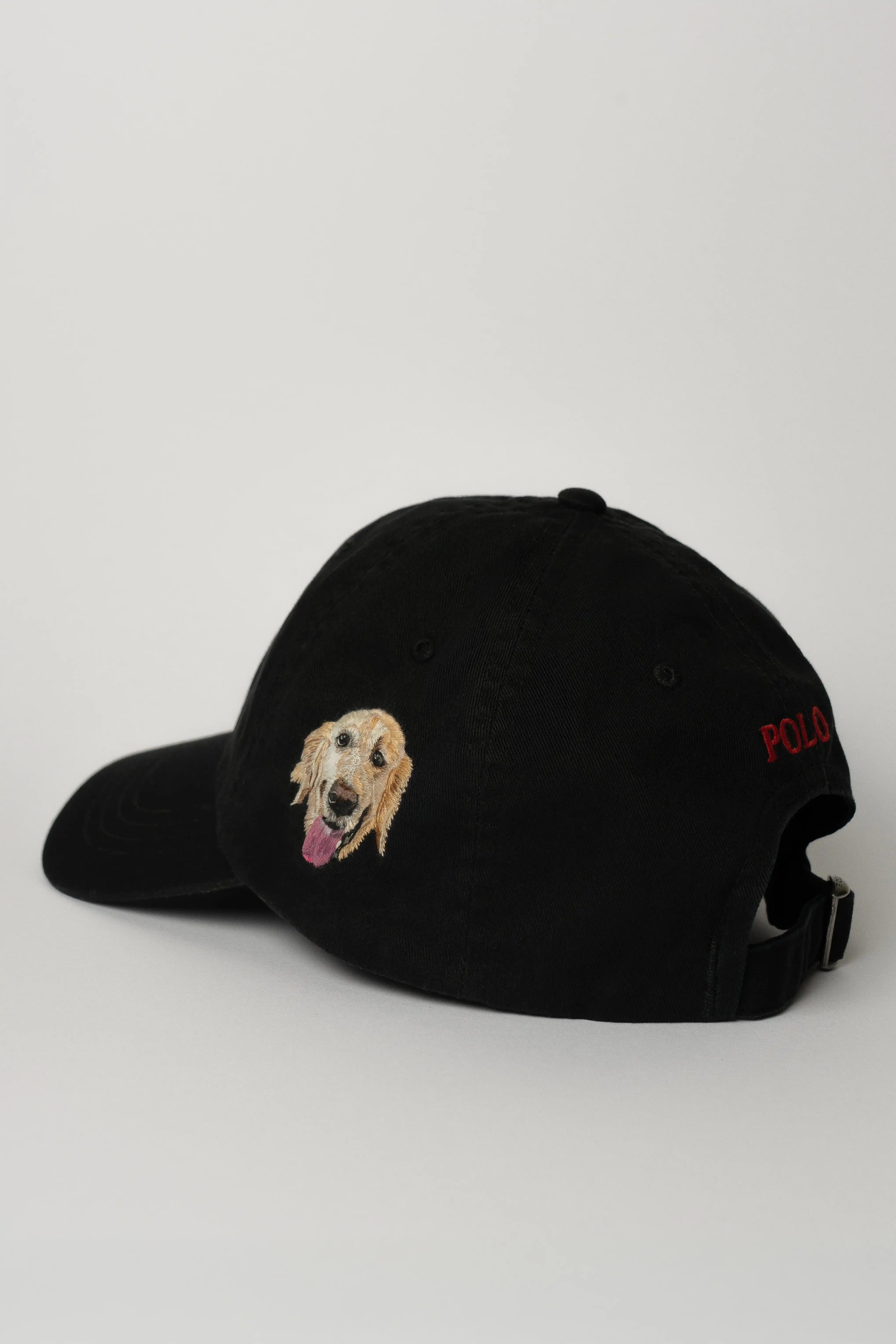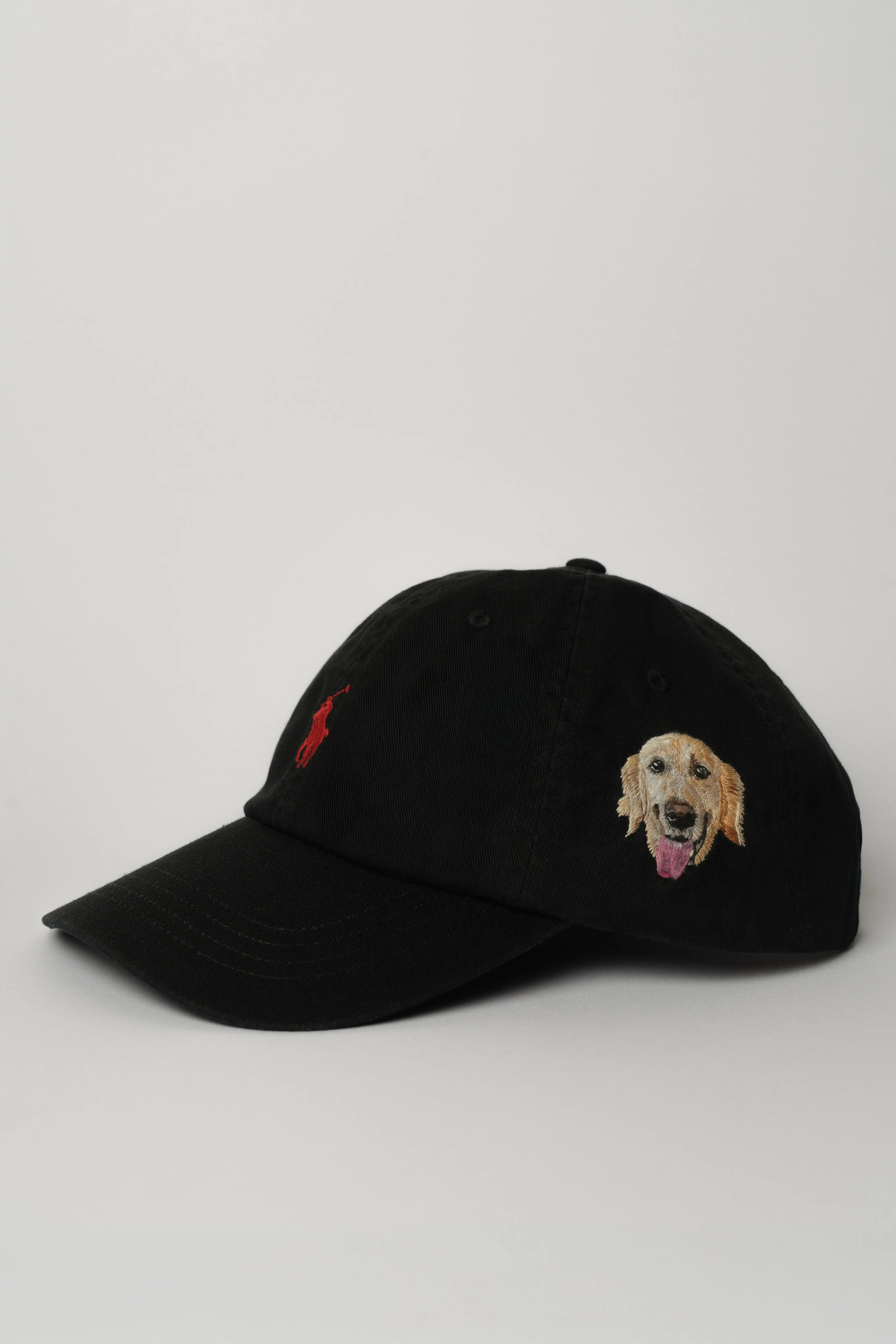 2025. Egyptian cotton thread (DMC) on Ralph Lauren cap, polo black/rl red. 28 thread colors. © Beatrice Seck.