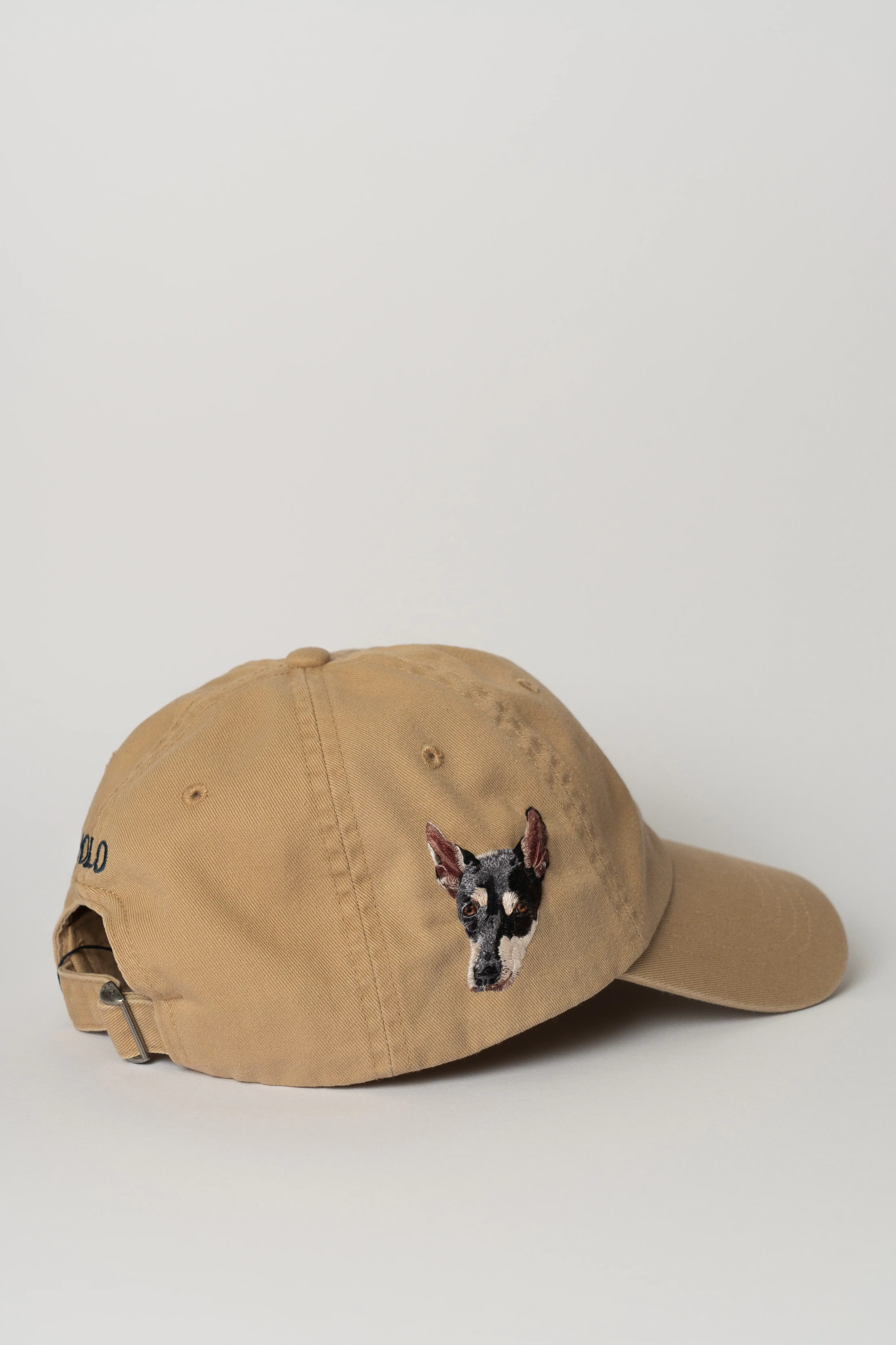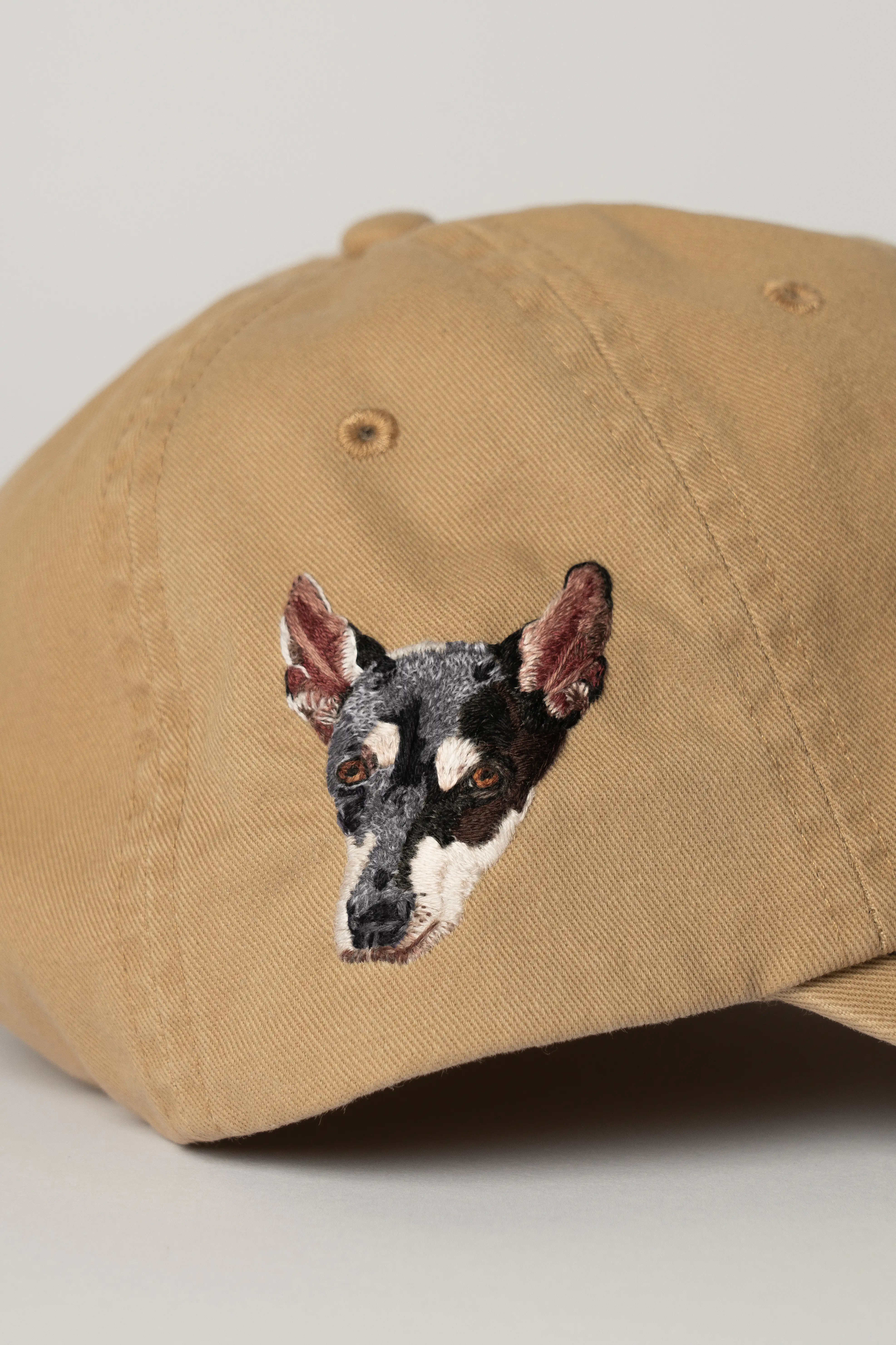2025. Egyptian cotton thread (DMC) on Ralph Lauren cap, cafe tan/newport navy. 18 thread colors. © Beatrice Seck.